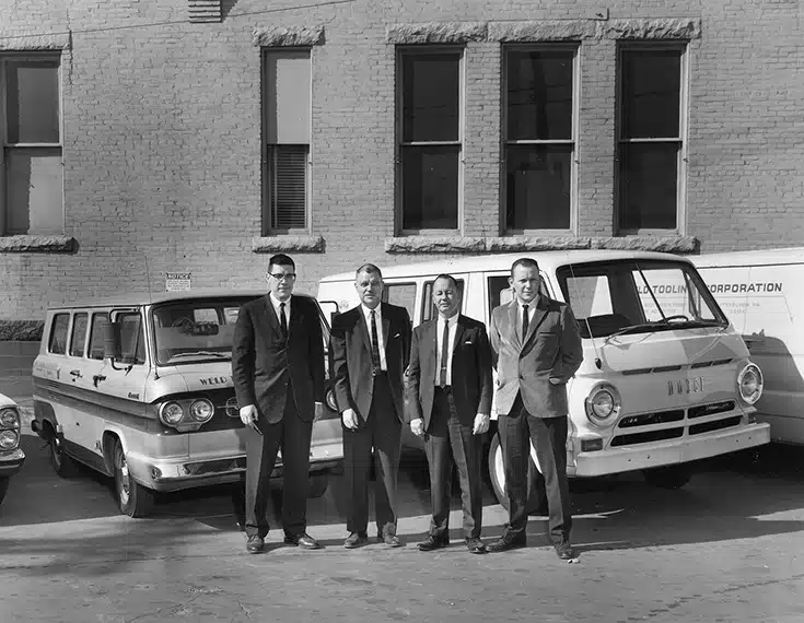 In 1943 the Livesay Multipurpose Machine was invented by Everett Livesay to increase the production of ships and landing craft at Higgins Shipyards in Louisiana. Five years later, H. Edward Cable, a consultant to the welding industry, and four business partners founded the company D&R Electric Company, Inc. on April 6, 1948. By 1958, the company had changed its name to Weld Tooling Corporation and Herbert E. Cable had joined the company as the company acquired the original patent rights to the Livesay Multipurpose Machine. Development and redesign work began, and the BUG-0 was the original model number of the newly updated machine. The original intention was for future machines to go up numerically (BUG-1, BUG-2, etc.) but the name BUG-O stuck.
