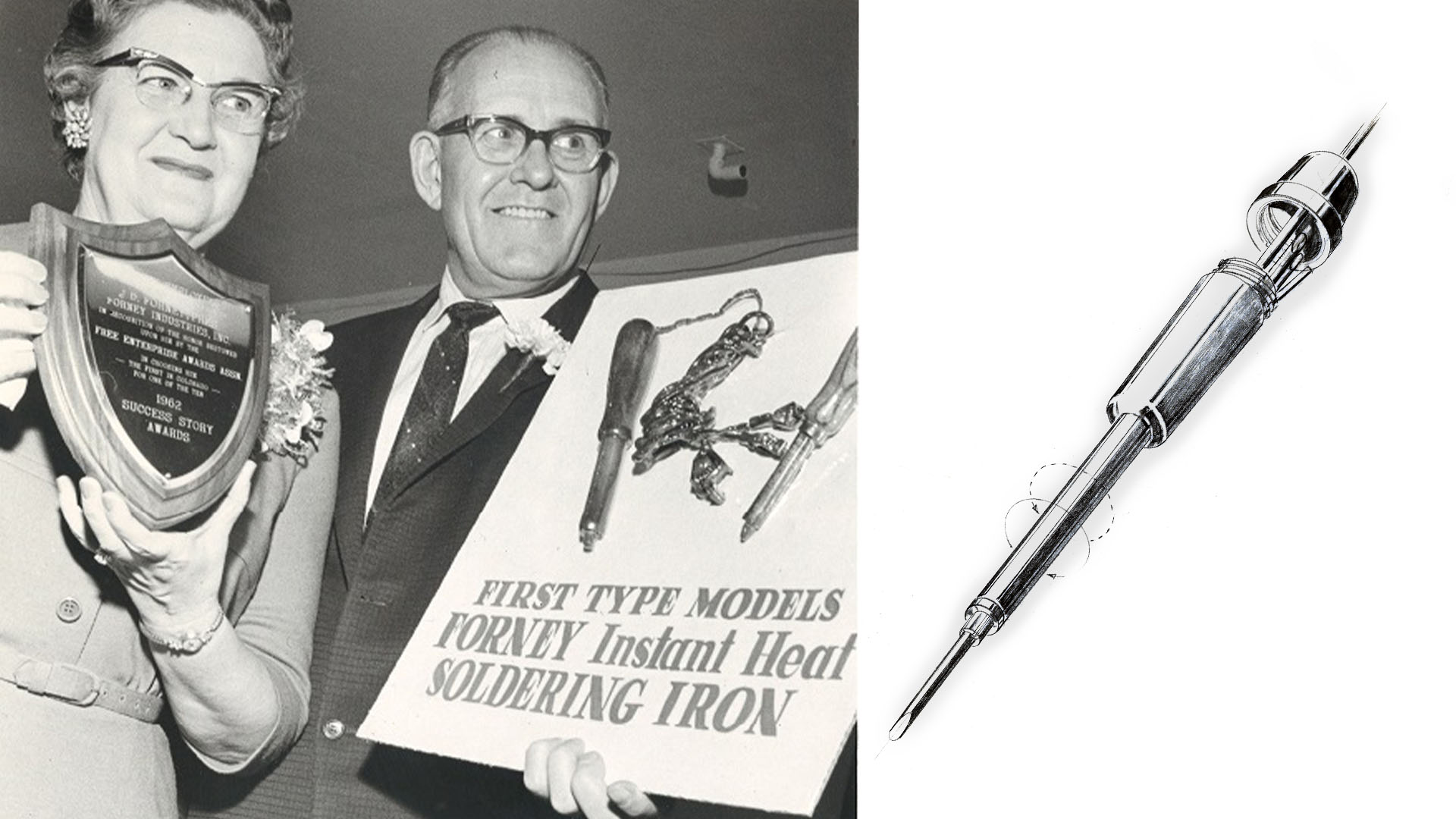 Forney Industries first opened its doors in 1932 when James Donovan Forney went into business for himself and began selling the Forney Instant Heat Soldering Iron door-to-door across the heartland. In 1936, Forney invented and produced the first publicly available 110-volt/125-amp and 110-volt/150-amp welders. Staff would climb electric utility poles to connect welders for demonstration to farmers and ranchers. Forney welders grew in popularity and, by 1945, Forney was producing 500 welders per week.